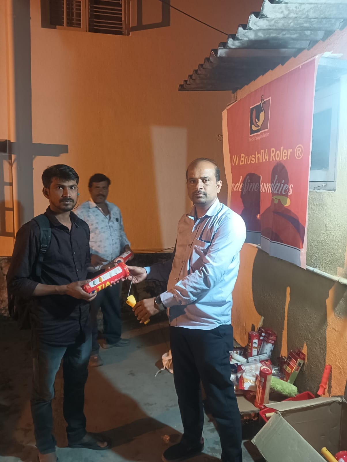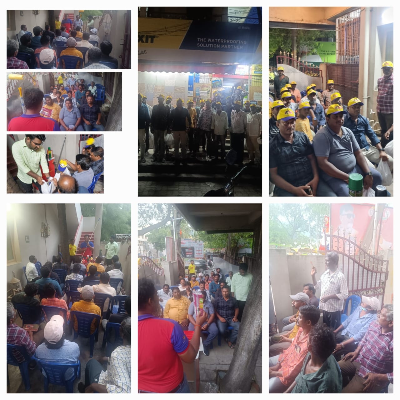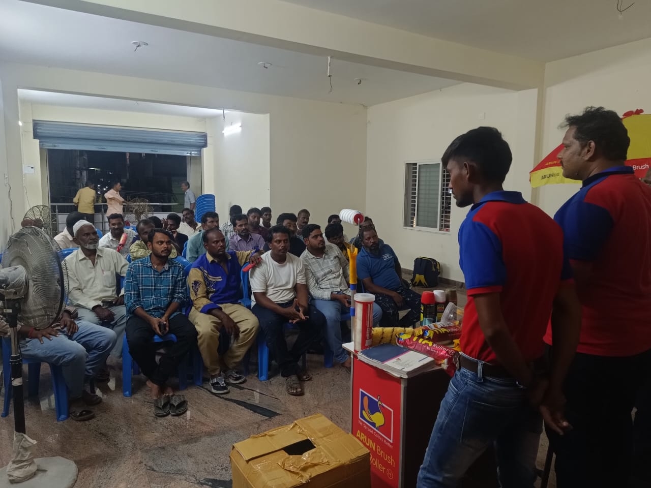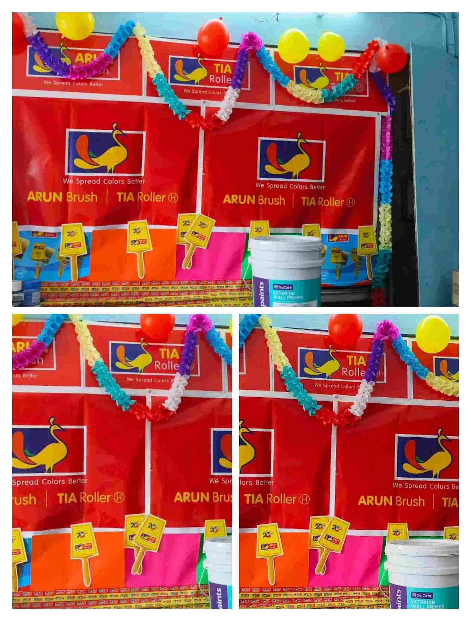 Read MoreIt sounds like there's a painters' meeting in Rajahmundry that includes demonstrations by TIA Roller and Arun Brush. This event seems to focus on showcasing painting techniques and tools. Painters are Provided with food and Complemented with Banians and Caps. (Meeting Date : 7.8.2024)