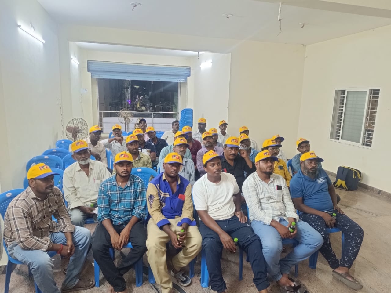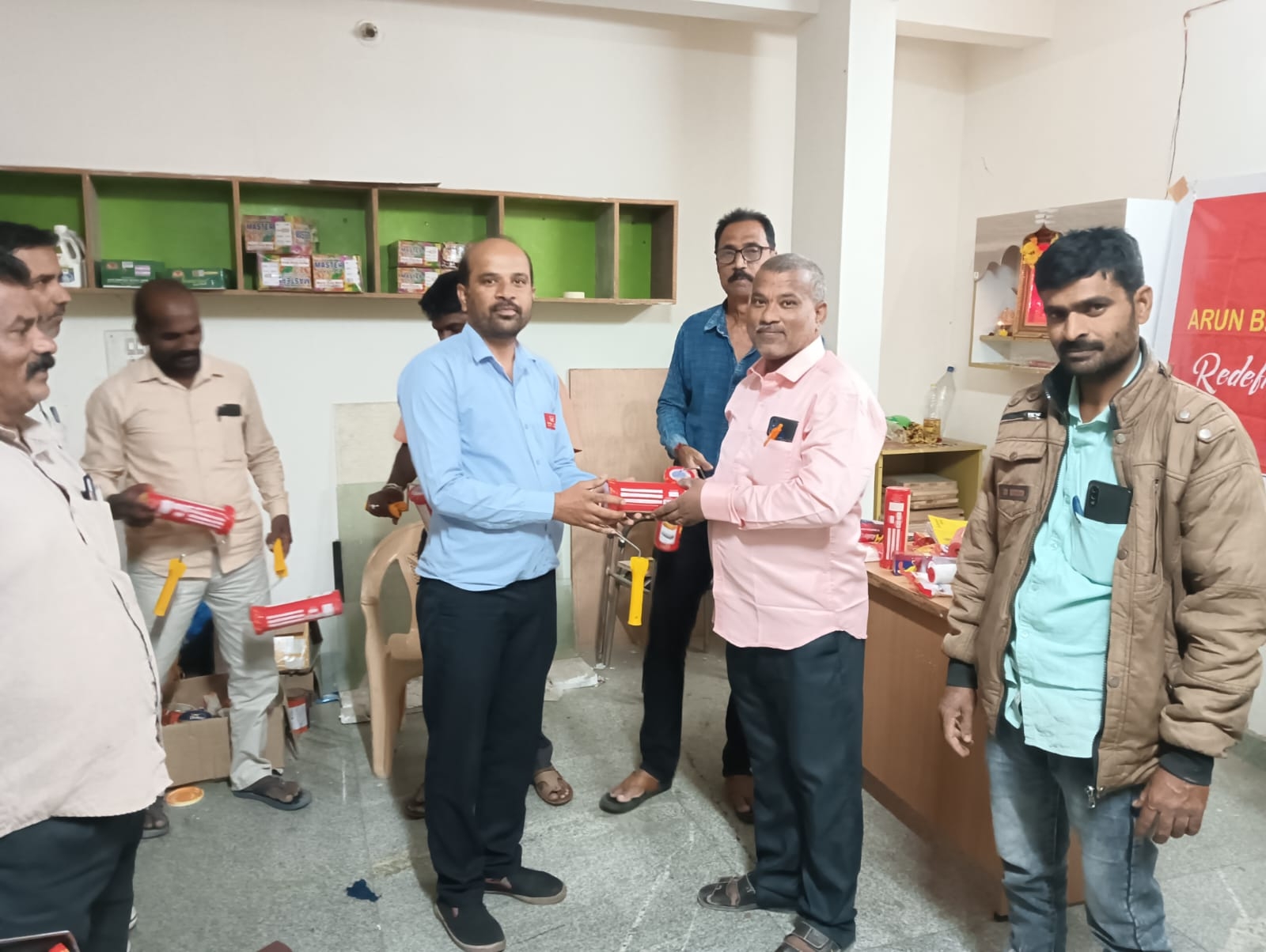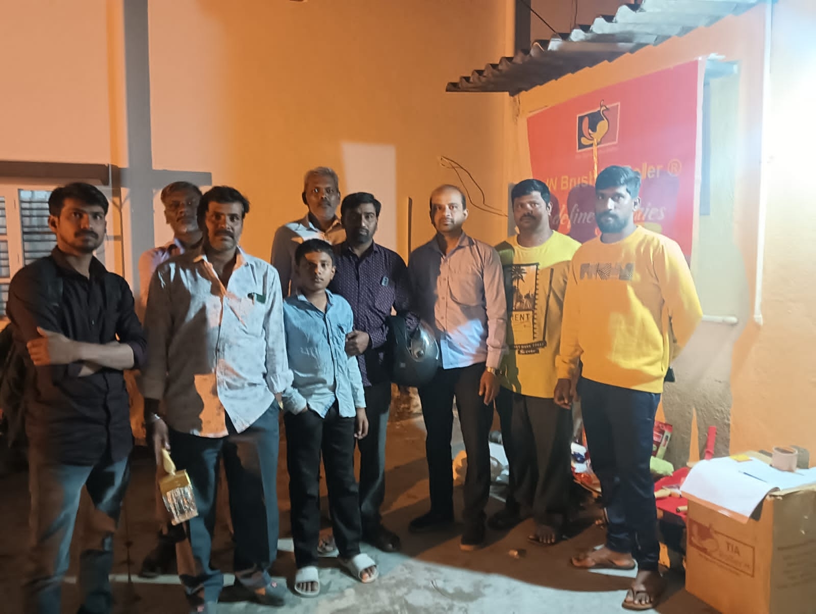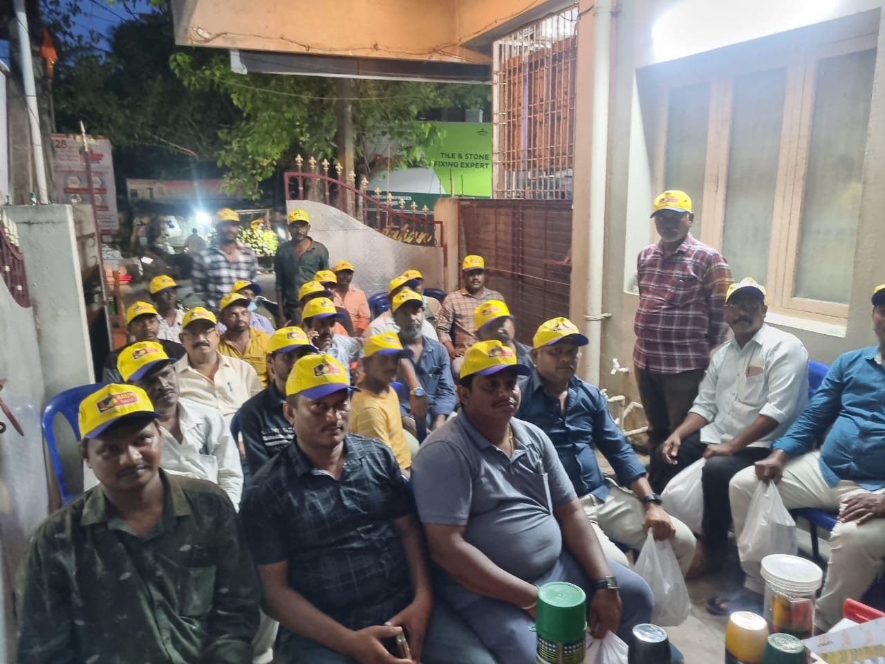 Read MoreIt sounds like there's a painters' meeting in Rajahmundry that includes demonstrations by TIA Roller and Arun Brush. This event seems to focus on showcasing painting techniques and tools. Painters are Provided with food and Complemented with Banians and Caps. (Meeting Date : 7.8.2024)