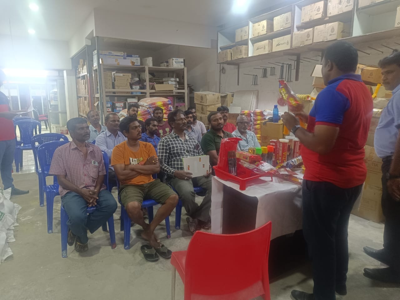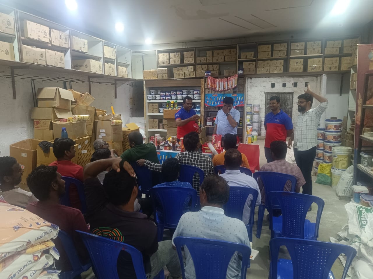 Read MorePainter meeting in (ASO Outlets)New Malka Paints & Prathap Paints & Sriman paints & Anapala paints & Eswar Paints Kadapa (AP) . A total of 46 painters participated. Provided them with food, Baniyan and cap. And explained our products and demonstrated the quality of our products. (Meeting Date :13.8.2024)